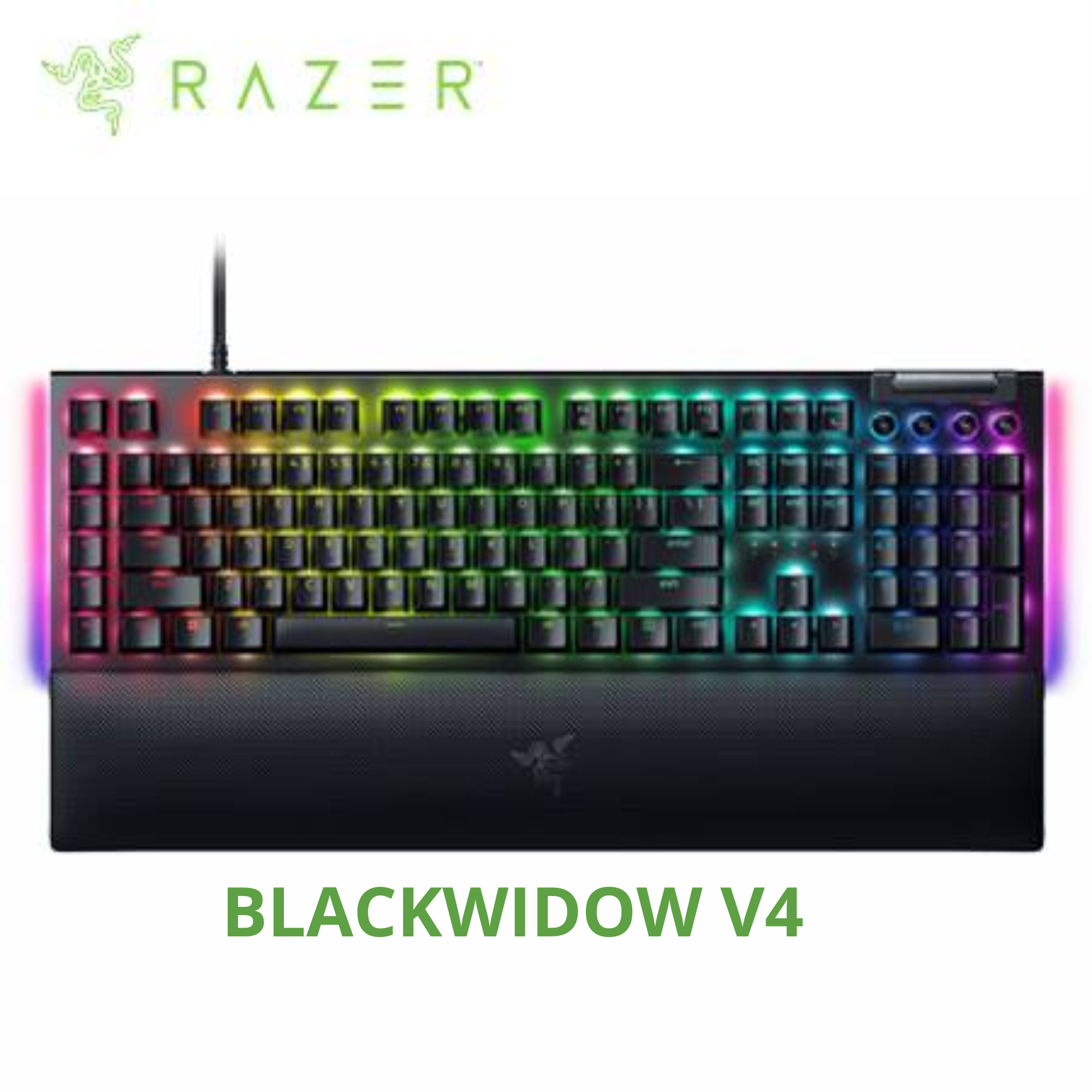 Teclado razer blackwidow v4 mechanical usb-c switch green hyperpolling 8,000hz us 2 zonas chroma black
